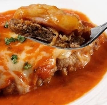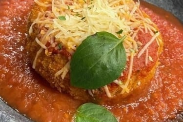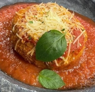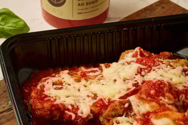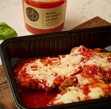 "Filé macio e suculento, empanado e frito até atingir uma crocância dourada e irresistível com molho de tomate artesanal