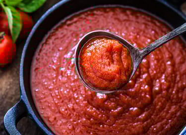 Saboroso molho de tomate, perfeito para destacar o sabor das massas e outros pratos clássicos.