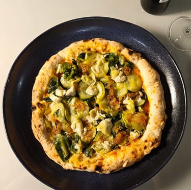 Pizzas Tradicionais: Preparadas com farinha 00 italiana, massa de longa fermentação e alta hidratação, prontas em cerca de 7 minutos no forno convencional.